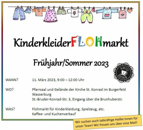 Flohmarkt für Kinderkleidung, Spielzeug, etc.WANN? 11. März 2023, 9:00 – 12:00 Uhr