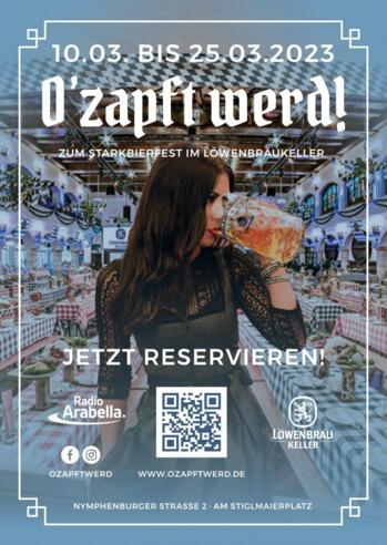 Endlich wieder Starkbierzeit. Nach zwei Jahren Pause ist das Starkbierfest zurück. Daraufhin zelebrieren wir mit euch zwei Wochen lang unseren Triumphator mit bayrischen Schmankerln, Live-Band und After-Party im legendären Festsaal des Löwenbräukellers.