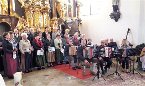 Der Singkreis Stanz führt gemeinsam mit Schülern des Stoanineums die „Harmonikamesse“ von Prof. Flori Michelbauer im Rahmen des Gottesdienstes auf. Chor und Ensemble ergänzen sich hervorragend und zeigen ihr Können.