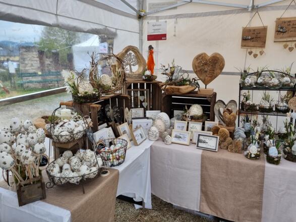 Zahlreiche Aussteller bieten Ihre selbstgefertigten Produkte zum Kauf an. Wie etwa Holzwaren aller Art, Keramik für Haus- und Gartenbereich, Textile Arbeiten, Kerzen aller Art, Schmuck, Floristik, Honigprodukte uvm.