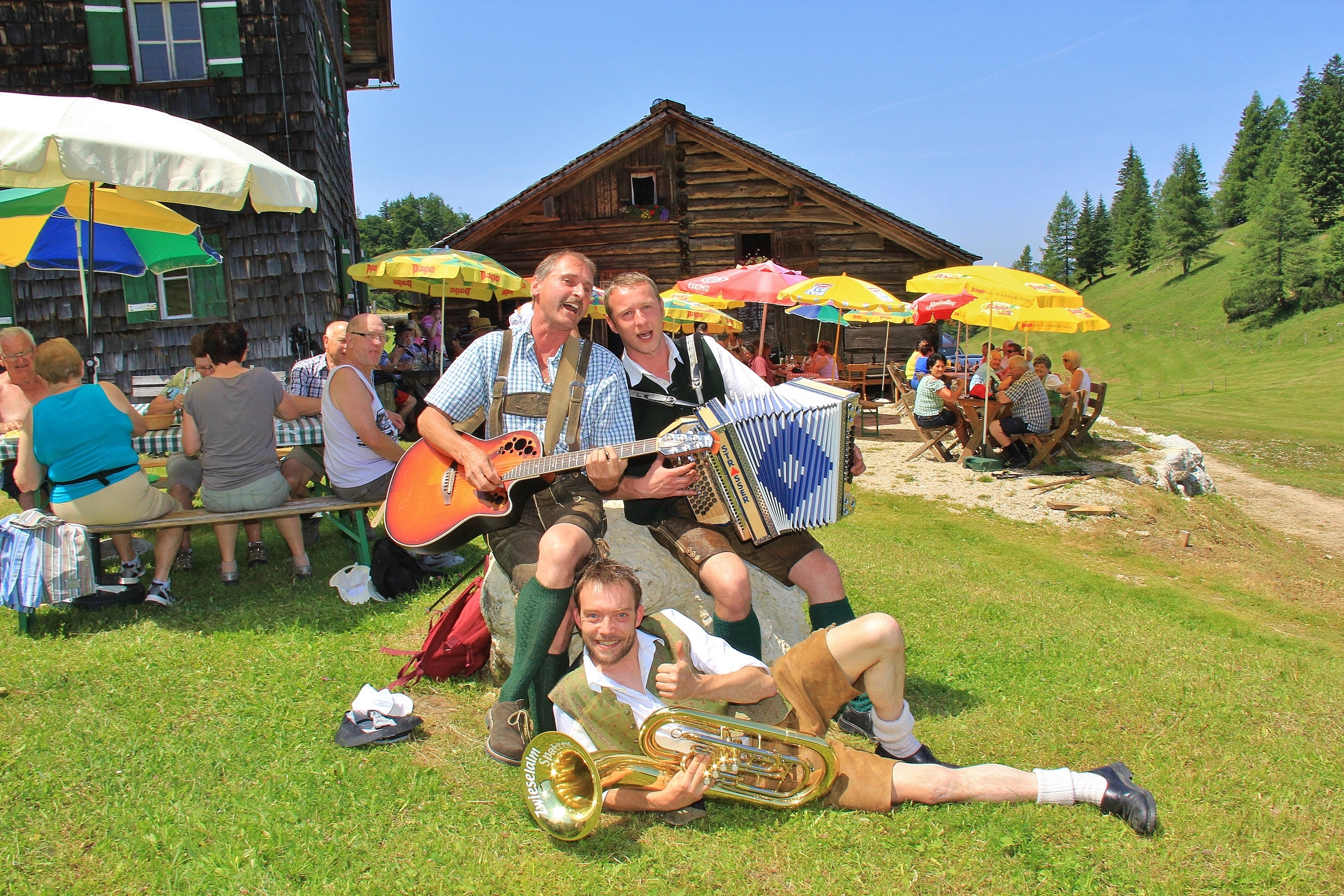 In Begleitung von Bläsergruppen wandern wir von Hütte zu Hütte bei der „Alm-Musi-Roas“