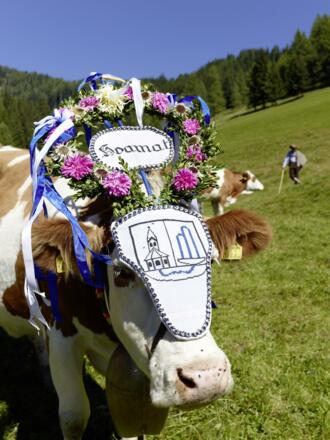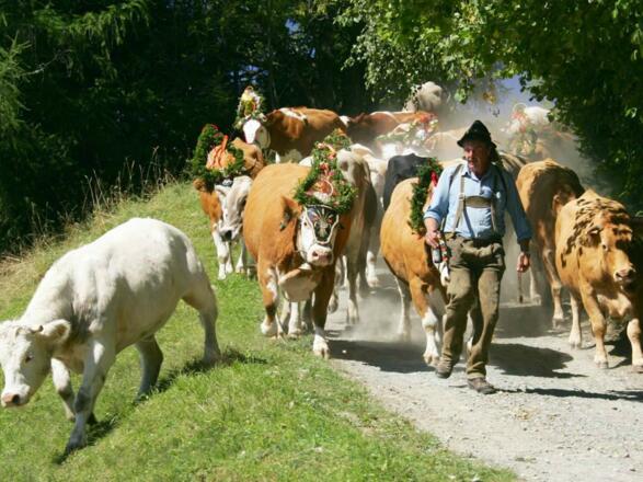 Ankunft des Viehs um ca. 10.30 Uhr in St. Oswald - anschließend „Aufkränzen“