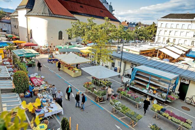 Jeden Donnerstag und Samstag von 6.30 bis 13 Uhr ist großer Markttag. (Fällt ein Markttag auf einen Feiertag, entfällt der Markt bzw. wird auf den Vortag verlegt).