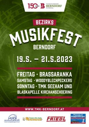 Von 19.-21.05.2023 feiert die Trachtenmusikkapelle Berndorf ihr 150 jähriges Bestandsjubiläum und das Bezirksmusikfest in Berndorf.