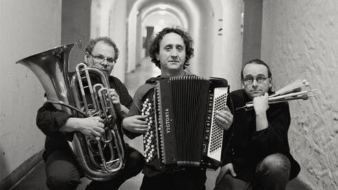 Luciano Biondini und Michel Godard trafen sich erstmals in der Band von Rabih Abou Khalil, als Trio mit Lucas Niggli haben sie im Jahr 2010 zusammengefunden. Lucas Niggli, geboren in Kamerun, ist einer der interessantesten Drummer in der europäischen Szene zeitgenössischer Musik. Luciano Biondini ist ein echter Meister des Instruments und Solist von überwältigender Dramatik. Michel Godard ist einer der flexibelsten und virtuosesten Tuba- und Serpent-Spieler mit unglaublichem Ausdrucksreichtum.