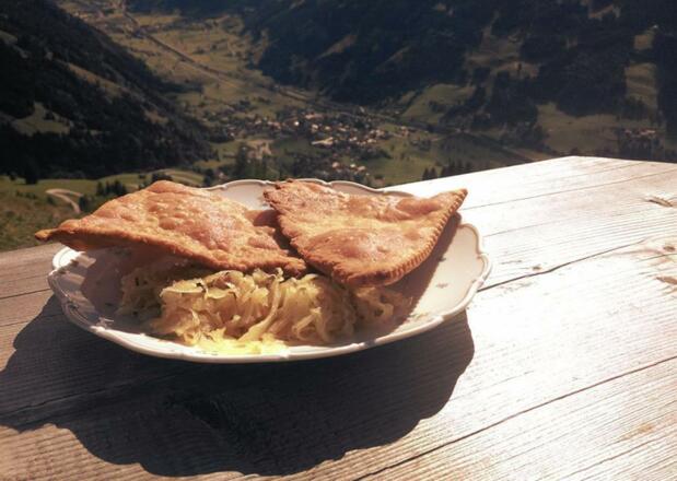 Es wird gezeigt wie diese traditionellen Krapfen frisch mit Sauerkraut zubereitet werden.