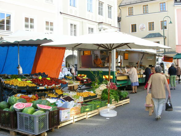 Alles was Ihr Herz begehrt finden Sie am Braunauer Wochenmarkt mit seinen zahlreichen Ständen von regionalen Anbietern. Umrahmt wird der Markt vom pittoresken gotischen Ambiente des großzügigen Stadtplatzes.