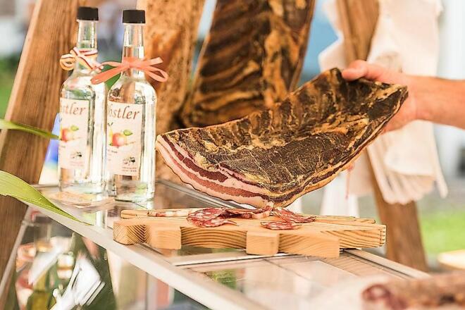 Hier kann man die verschiedensten Produkte wie Slibowitz, Liköre, Schinken, Salami, Brot, Honig, Marmeladen, Dörrobst, Kräutercremen, Essenzen, Schafwolle und Schafwollprodukte, Kräuter, Tees, Essig, Mehl und vieles mehr verkosten und erwerben.