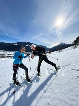 Eine echte Weltneuheit wurde mit diesem speziellen Schneeschuh-System unter der Regie von Skibindungspionier Ulo Gertsch entwickelt: Steigen, fahren und gleiten sind damit möglich und diese neuartige Technik verleiht dem Schneeschuh-Sport noch mehr Auftrieb und Begeisterung.Tourenski und Schneeschuh in einem Schneeschuhwandern und Hinuntergleiten Inkl. Sicherheitsausrüstung & geschultem Guide Durch die romantische Winterlandschaft stapfen.