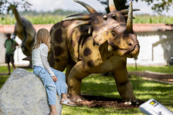 Mit dem DINOLAND wurde ein einzigartiges Urzeit-Klassenzimmer geschaffen, in dem interaktive Kinderbereiche zum Entdecken, Anfassen und Ausprobieren einladen. Statt im verstaubten Museum können Kinder und ihre Eltern im wunderschönen Ambiente von Schloss Katzenberg Spannendes über die Urzeit-Kolosse und ihre Zeit erforschen. Neben den beeindruckenden Exponaten bietet der Erlebnis-Park ein vielfältiges und außergewöhnliches Mitmach-Programm für jedes Alter. Im Dinodrom können die kleinen Besucher in Dino-Scootern ihre Runden drehen, beim Dino-Reiten auf lebensgroßen Sauriern sitzen und bei der Dino-Rallye einen personalisierten Forscherpass gewinnen. Spannend und lehrreich ist das Aussieben von Schätzen und das Freilegen von Fossilien im Forschercamp, in dem die Kinder zu Hobby-Archäologen werden!