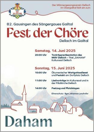 20 Uhr Tonträgerpräsentation des MGV Dellach - Titel "DAHAM" im Kultursaal Dellach