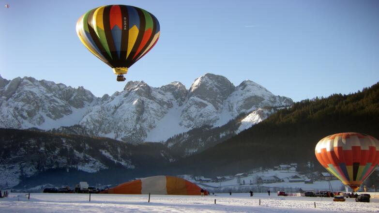Täglich starten zahlreiche Heißluftballone in Gosau Ortsteil Mittertal im Holzmeisterfeld nahe der Tankstelle. In Windeseile steigen sie auf und schmücken den Himmel, als würden riesige bunte Kugeln über Gosau hängen. Seien Sie dabei und lassen Sie sich von der bunten Vielfalt begeistern.