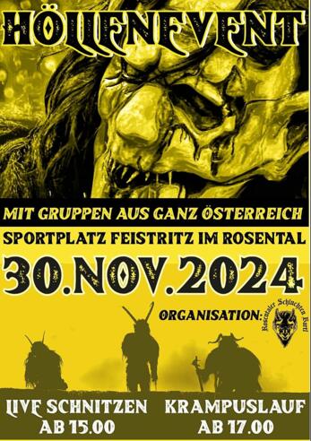 Krampuslauf und Höllenvent der Rosentaler "Schluchtenbartl" am Sportplatz in Feistritz im Rosental