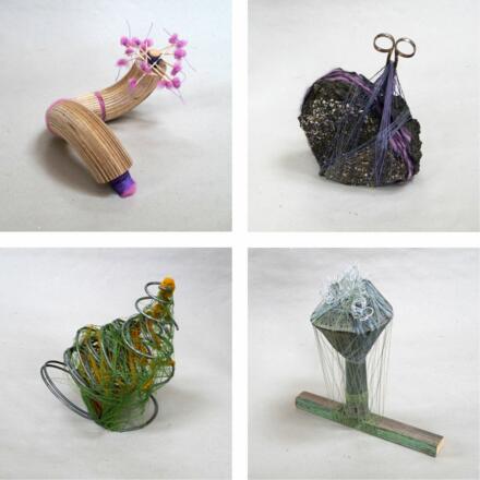 „In die Schnur geraten“, so der Titel der Ausstellung, bezieht sich auf die aktuellen Arbeiten der Künstlerin. Alltags- und Fundgegenstände werden dabei aus ihrem Kontext genommen und mit feinen Fäden oder Schnüren in neue Zusammenhänge verwickelt. Die daraus entstehenden Objekte überraschen mit ungewöhnlichen und spontanen Ideen, bringen den Betrachter, die Betrachterin zum Staunen und beflügeln die Fantasie.