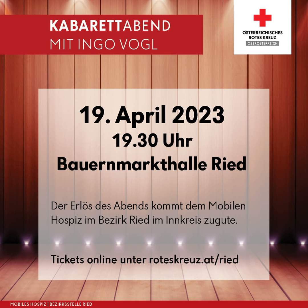 Das Team des Mobilen Hospiz Ried im Innkreis lädt zum Kabarettabend mit Ingo Vogl in der Bauernmarkthalle Ried im Innkreis.
