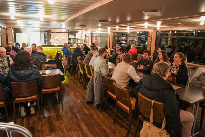 | Preisinformation | Zusatzinfo: EUR 79,- pro Person inklusive Weinverkostung am Schiff, eines Gerichts und einem Getränk pro Betrieb |