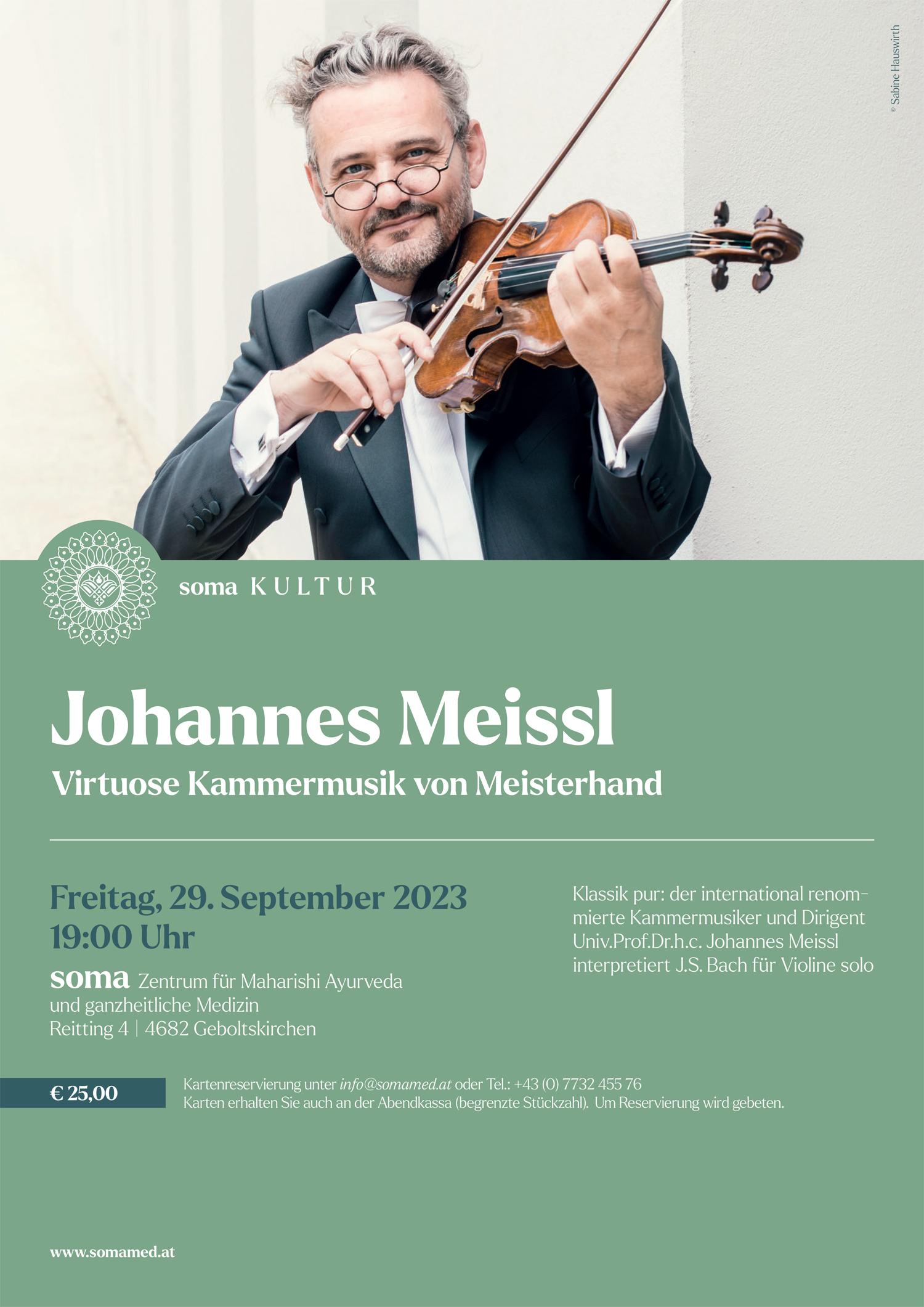 Klassik pur: der international renommierte Kammermusiker und Dirigent Univ.Prof.Dr.h.c. Johannes Meissl interpretiert J.S. Bach für Violine solo.