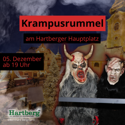Ab 19 Uhr: Traditioneller Krampusrummel vom Edelweißverein Hartberg am Hauptplatz. Organisiert von Obmann Gerhard Mayer.