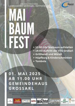 Die Landjugend Großarl-Hüttschlag stellt um 12.00 Uhr beim Gemeindehaus in Großarl den Maibaum auf. Um 14.00 Uhr tritt die Volkstanzgruppe Großarl auf. Für die Kinder wird eine Hüpfburg aufgebaut und sie können sich beim "Kinderschminken" schminken lassen, außerdem gibt es eine tolle Tombola. Für das leibliche Wohl ist gesorgt!
