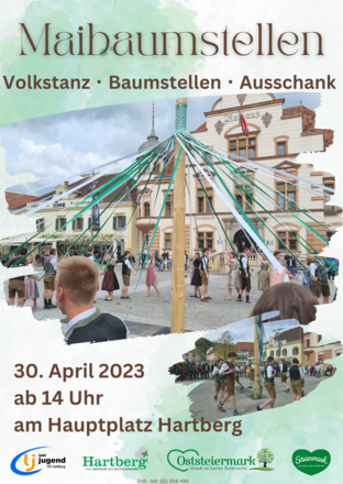 Traditionelles Maibaumstellen der Landjugend am Hauptplatz in Hartberg mit Volkstanz, Baumstellen und Ausschank!