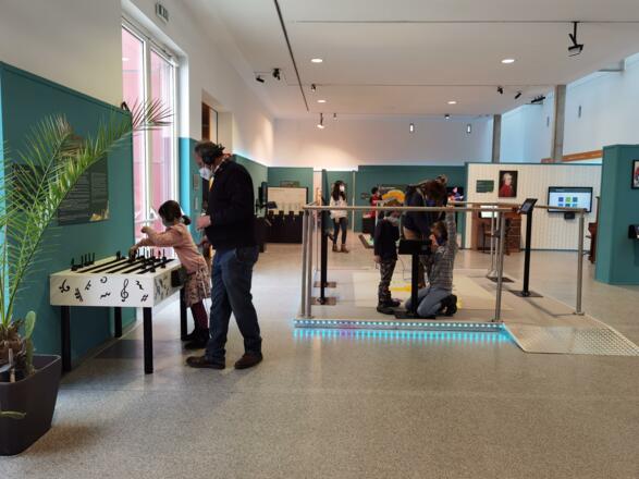 Aktuell lädt die wissens.wert.welt Groß und Klein zur MusiKUSS Mitmach-Ausstellung ein! Dort kann an vielen verschiedenen Stationen nach Lust und Laune entdeckt werden, wie sich beispielsweise Schall ausbreitet, wie Hören und Singen funktionieren, oder welche verschiedenen Tonträger sich über die Zeit entwickelt haben. Besucher*innen können mit den Farben Kandinskys ihr eigenes Musikstück malen und mit den Tönen Mozarts ihre Namen schreiben. Es wartet ein Bodenklavier darauf bespielt zu werden und nebenbei gibt es so manches über verschiedene Genres und die europäische Musikgeschichte zu erfahren! Die Ausstellung wurde unter anderem in Kooperation mit der Gustav Mahler Privatuniversität in Klagenfurt und dem Haus der Musik in Wien entwickelt und bietet vielfältige Einblicke in das Musikthema!