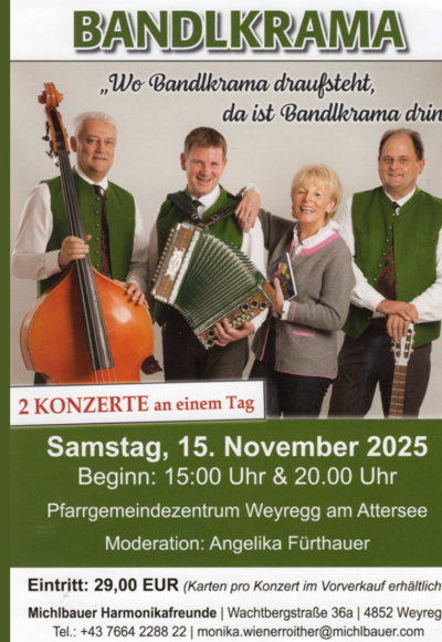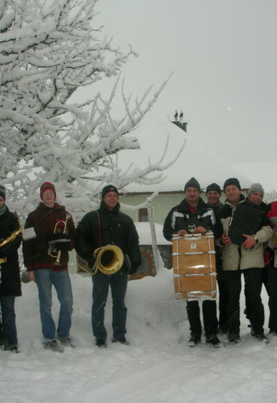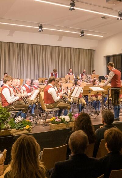 Die Musikkapelle Weyregg veranstaltet ein Seeblasen - eine Gruppe Musikanten fährt im Boot auf dem See und spielt Weisen für die Zuhörer am Ufer - nur bei ruhiger See!