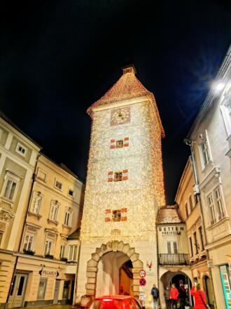 Wer den schönen Lichterglanz nicht nur beim Bummeln im Vorbeigehen erleben möchte, der kann ihn bei einer Führung auch ganz genau erkunden. Gemeinsam mit einer Märchenerzählerin geht von Lichtobjekt zu Lichtobjekt und diese weiß zu jeder Figur eine kleine Geschichte: Dass der Hirsch einst mit strahlendem Schein im Geweih Herzog Tassilo erschien und dieser dann in der Nähe das Stift Kremsmünster erbauen ließ oder wie sich der Nikolaus für die Kinder vom Eichhörnchen Nüssen ausborgen musste und, dass der 6 Meter hohe Kran von Felbermayr in wahrer Größe sich bis zu 2,5 mal so hoch wie das Maria-Theresia-Hochhaus aufbauen lässt. Infos und buchen in der Wels Info oder unter www.wels.at/lichterpfad