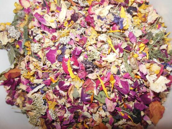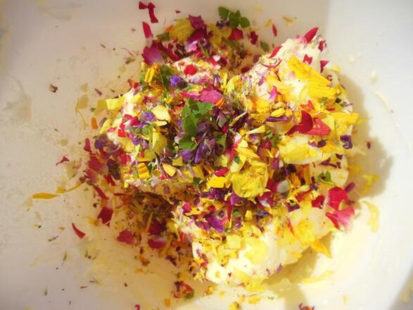 Familie Klaushofer kredenzt verschiedene Köstlichkeiten daraus, wie beispielsweise Rosenbutter, verschiedene Sirupe, Kräuteraufstriche, Nusspesto, Marmeladen, Kräuterhonige, Kräuterkäse und vieles mehr.