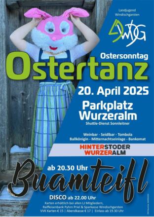Der, über die Pyhrn-Priel Grenzen hinaus, bekannte Ostertanz, organisiert von der Lj Windischgarsten, findet auch heuer erstmals am Parkplatz bei der Wurzeralm statt.