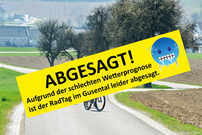 Der RadTag im Gusental ist aufgrund der schlechten Wetterprognose leider abgesagt.