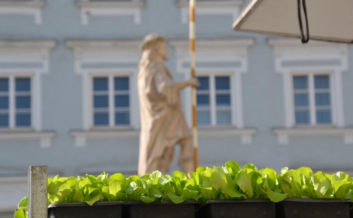 Der traditionelle Grünmarkt inmitten historischer Bürgerhäuser ist Woche für Woche ein beliebter Treffpunkt jener, die das reichhaltige und stets frische Angebot der Direktvermarkter zu schätzen wissen.