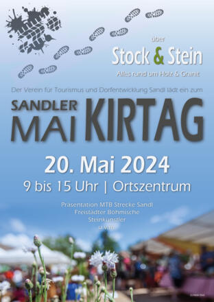 In bewährter Manier bietet der Kirtag Bühnenattraktionen im Stundentakt. Gestartet wird um 9 Uhr mit dem Festgottesdienst zu Ehren des Hl. Nepomuk in der Pfarrkirche. Ab 10 Uhr sorgt die Blasmusikgruppe „Freistädter Böhmische“ auf der Bühne für musikalische Unterhaltung. Die Leiterin des Leader-Projektes „Mountainbiken in der Hügelwelt“ Bettina Preinfalk und die Sandler Radgruppe stellen die frisch beschilderte MTB-Strecke vor. Druckfrisch zum Mitnehmen gibt’s die neue Radkarte beim Infostand der Radler.
