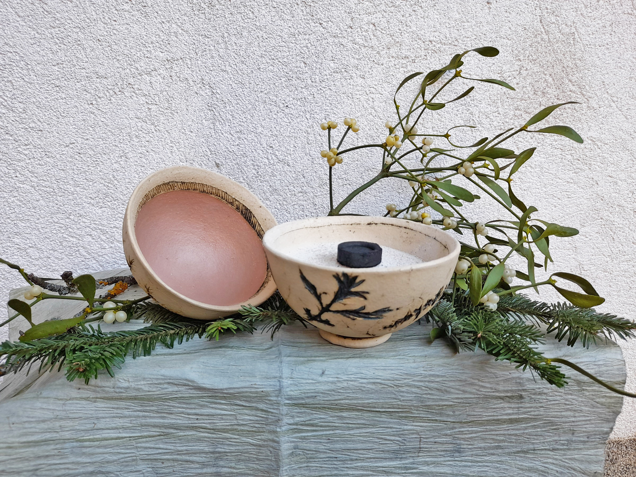 Bei uns im Naturpark wachsen sie an vielen Plätzen: aromatische und kraftvolle Räucherpflanzen, mit denen schon seit Jahrhunderten Schutz und Reinigung erbeten werden. Wacholder, Beifuß und Wilder Thymian (Quendel), Engelwurz und Co. In der inspirierenden Atmosphäre meines  Ateliers gestalten wir unsere persönliche Räucherschale aus Ton und verwenden dazu Abdrücke dieser Wildpflanzen.