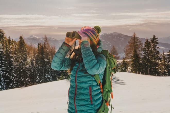 Mit Ferngläsern und Spektiv auf den Spuren von Gämsen, Rothirschen und verschiedenen Greifvögeln sowie unzähligen anderen Raufußhühnern mit unserer Nationalpark-Rangerin unterwegs!