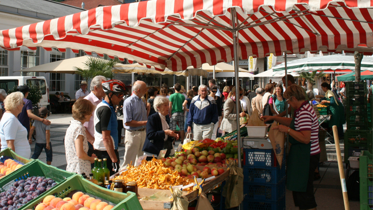 Das Vergnügen den Wochenmarkt zu besuchen, bietet sich jedem Feinschmecker wöchentlich freitags ab 7 Uhr Früh. Dann ist der Duft nach frischem Brot, orientalischen Gewürzen und frisch gebackenen Mehlspeisen am Auböckplatz und in der Kaiser-Franz-Josef Straße schon von weiter Ferne zu vernehmen.