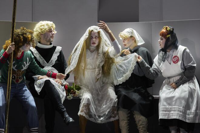 Um eine Art worst case finanzieller Natur ging es bereits in Rögglas früherem Stück Draußen tobt die Dunkelziffer, in dem sich die Dramatikerin in vergnüglichen Sprachspielen mit Verschuldung, Überschuldung und dem Umgang damit auseinandersetzte. Die Regisseurin Katka Schroth, die bereits für die erfolgreiche österreichische Erstaufführung von Elfriede Jelineks Das Licht im Kasten verantwortlich zeichnete, verschneidet für ihre neue Inszenierung am Landestheater Linz beide Texte zu einem abgründig-komischen Sprachreigen der Existenzängste.
