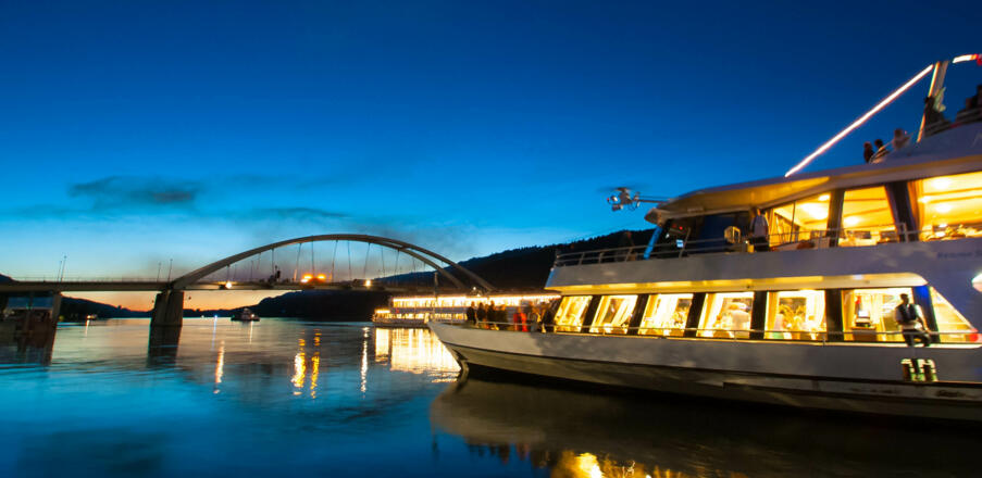 Tausende Schaulustige zieht das Klangwolke-Festival in Linz jedes Jahr an. Seien Sie hautnah dabei und genießen Sie einzigartige Ausblicke von unserem eleganten Galaschiff Regina Danubia aus! Direkt vom Wasser aus haben Sie einen einmaligen Blick auf das Spektakel. Und auch an Land im Donaupark haben wir für unsere Fahrgäste einen extra VIP-Bereich reserviert. Es wartet ein unvergesslicher Abend auf Sie!