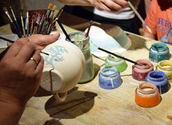 Geschirr aus Ton bemalen