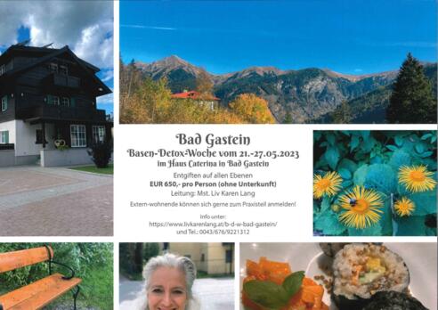 Die im Haus wohnenden TeilnehmerInnen werden mit basenreicher, vegetarisch/veganer Kost und Entgiftungstee unterstützt, ohne das der Hunger nagt und die Entgiftungsorgane unterstützt und entlastet.