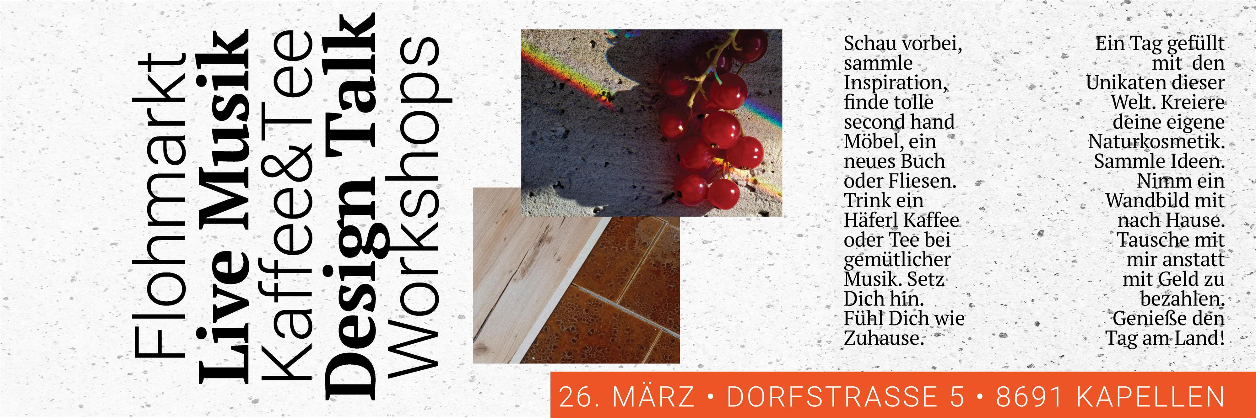 Flohmarkt - Live Musik - Kaffee & Tee - Design Talk - Workshops