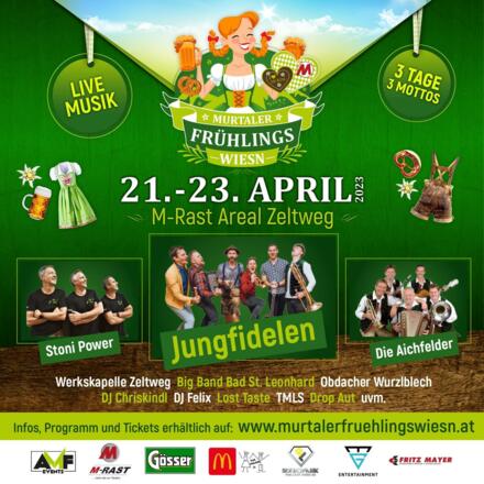 Wiesn Liebe! Da ist sich das ganze Murtal einig. Kombiniert mit der wunderschönen Location im Bergland des Murtals, inmitten der Natur und der Liebe zum Detail, hält die Murtaler Frühlingswiesn zum dritten Mal Einzug – 3 Tage voller Liebe und Musik stehen uns im April 2023 bevor! Ob Volksmusik, Rock, EDM oder 90er, ob Jung oder Alt, aus der ganzen Region und darüber hinaus – Die Murtaler Frühlingswiesn verbindet uns.