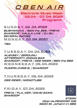 Easter Electronic Music Week - jeden Tag DJs bis zum Sonnenuntergang!