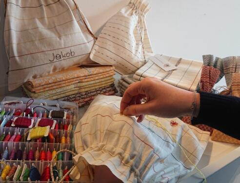 Einfache Beutel aus Halbleinen mit Tunnelzug, die im Textilen Zentrum Haslach gewebt und genäht wurden, werden dabei unter Anleitung mit einfachen Stickstichen verziert. Die Technik ist für Kinder und Erwachsene geeignet. Bereits nach ca. einer halben Stunde hat jede/r, der/die mitmacht, ein schönes Ergebnis in Händen!