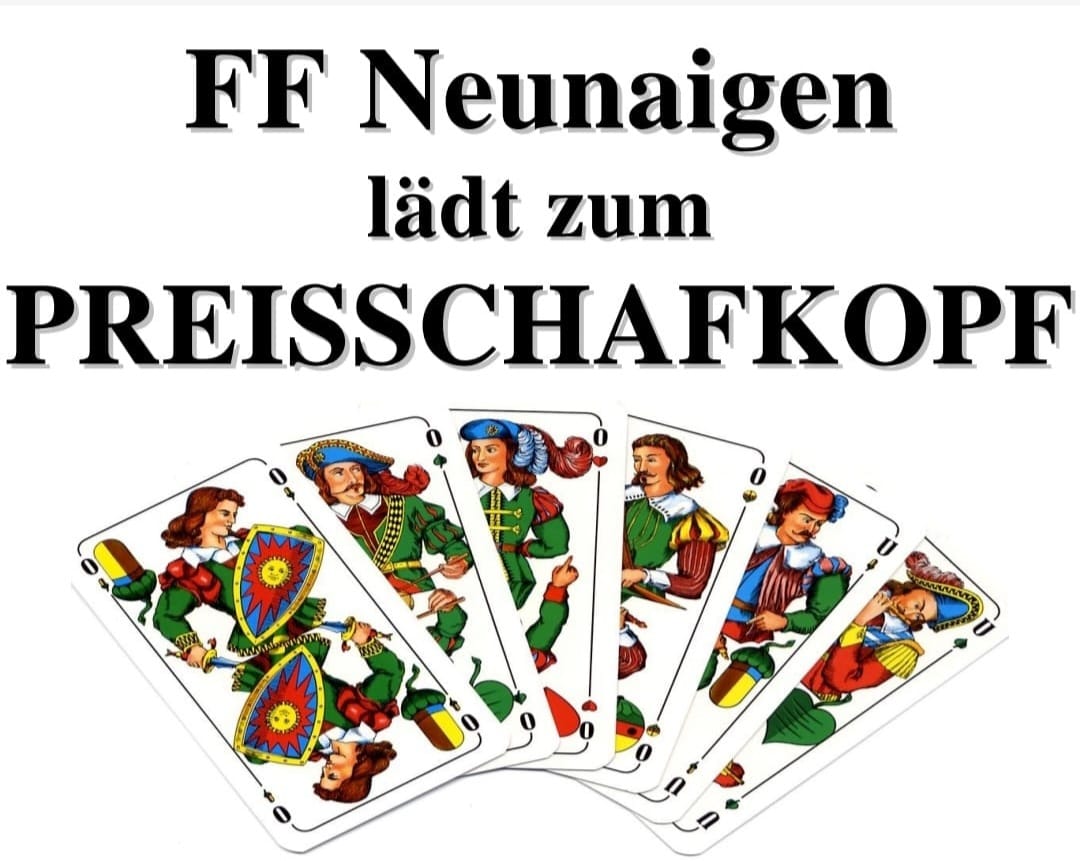 Die Feuerwehr Neunaigen lädt zum Preisschafkopf am 01.April ins Schützenheim Neunaigen ein.
