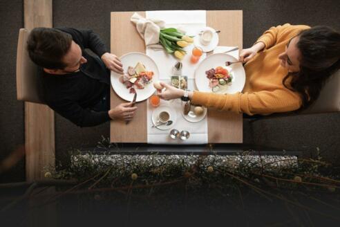 Zusätzlich zum gewohnten Frühstücksangebot gibt es je nach Saison und Anlass zahlreiche Köstlichkeiten wie Osterschinken im Brotmantel, Buchteln in Vanillesauce oder zu Pfingsten Spargel mit Schinken, Eierschwammerlstrudel oder Zotter-Schokoladenfondue. Zu Neujahr warten deftige Speisen wie Schwammerlsuppe mit Heidensterz, Bohnen im Vulcano-Speck oder Kaiserschmarrn auf Sie.