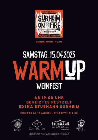 Die Freiwillige Feuerwehr Surheim und die Musikkapelle Surheim "Surheim on fire" veranstalten am Samstag, 15.04.23 ab 19 Uhr ein Weinfest im beheizten Festzelt am Edeka Stubhann Gelände in Surheim.