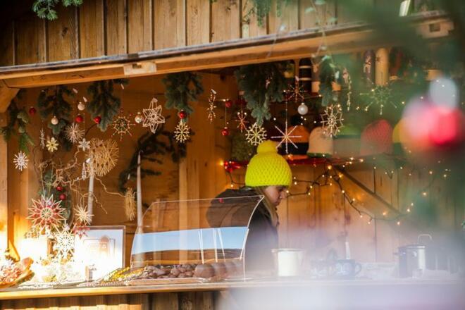 Idyllische Holzhütten mit einer Auswahl an liebevoll ausgesuchten Geschenksideen, Produkten aus fairem Handel, duftende Lebkuchen, Kletzenbrot, hausgemachte Kekse, gebrannte Mandeln, Bauernbrote, Schokofrüchte, Ofenkartoffel, Engerlpunsch und Glühwein sowie noch viele weitere weihnachtliche und traditionelle Köstlichkeiten laden zum Schmökern, Gustieren und Verweilen ein.
