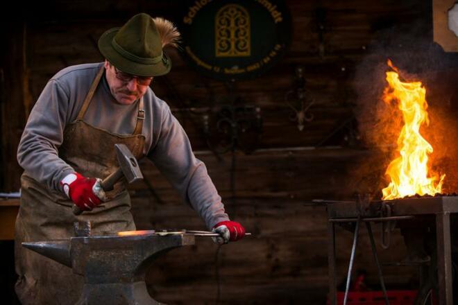Der Schmied formt persönliche Glückshufeisen und ein Christbaum für den Heiligen Abend kann gleich ausgesucht werden.