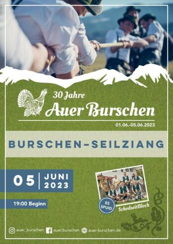 Am Montag lassen wir unser Jubiläum mit einem Burschen-Seilziang ausklingen. Musikalisch umrahmt wird der Abend von "SchodseitBlech".