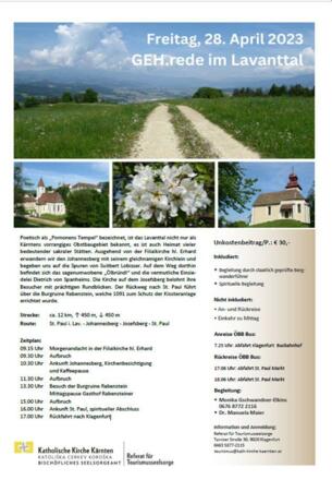 "Gemeinsam ins GEH.rede kommen" heißt, sich irgendwo in Kärnten auf den Weg machen, sich über Gott und die Welt austauschen und sich auf Kultur, Geschichte und Spiritualität einlassen wollen.